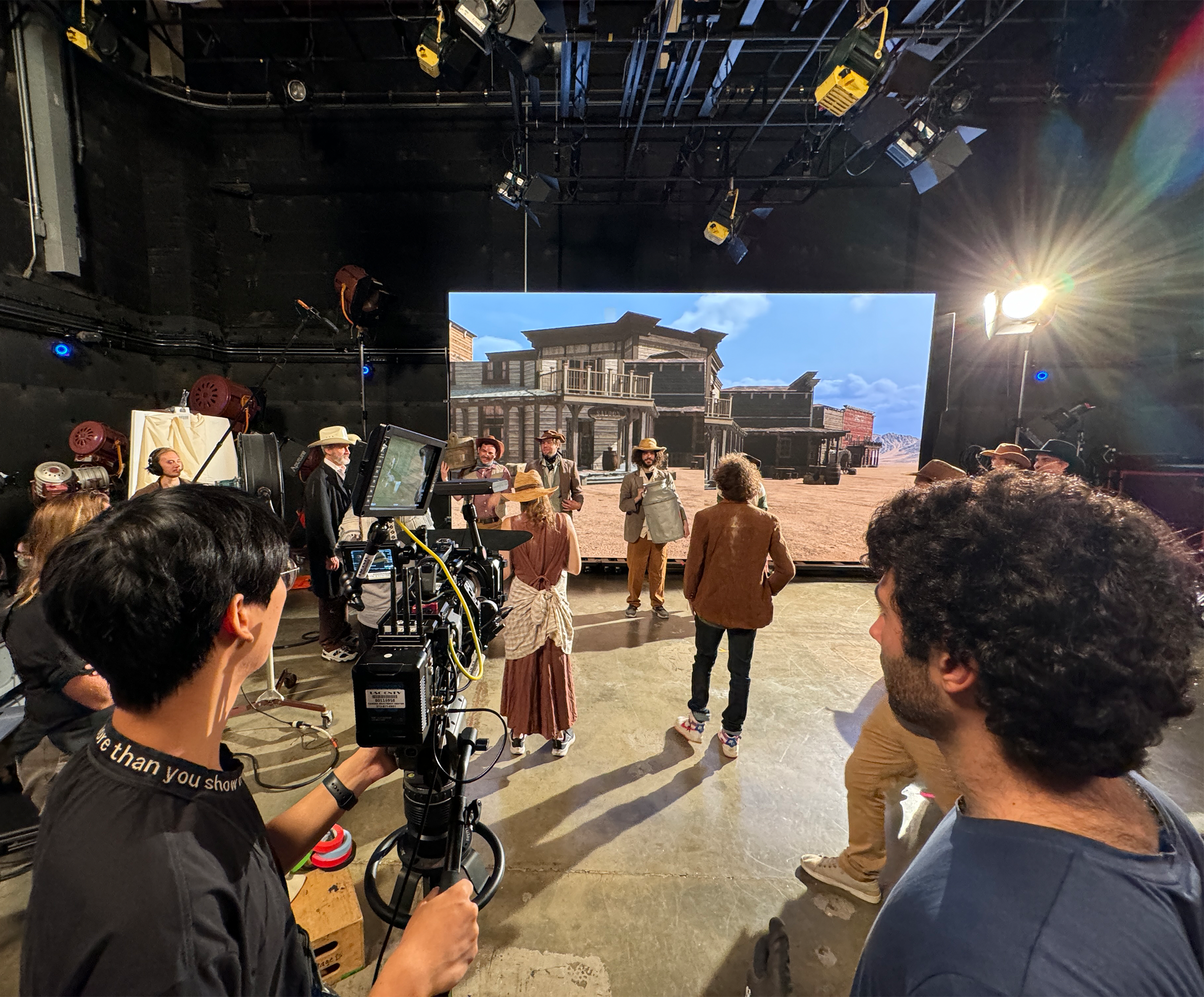 Features a wraparound LED panel wall, as well as motion capture/performance capture, camera tracking, and lighting systems. Approximately INSERT NUMBER square feet. Can operate independently or can be joined to Studio A to create more panoramic virtual sets or bigger physical production spaces.